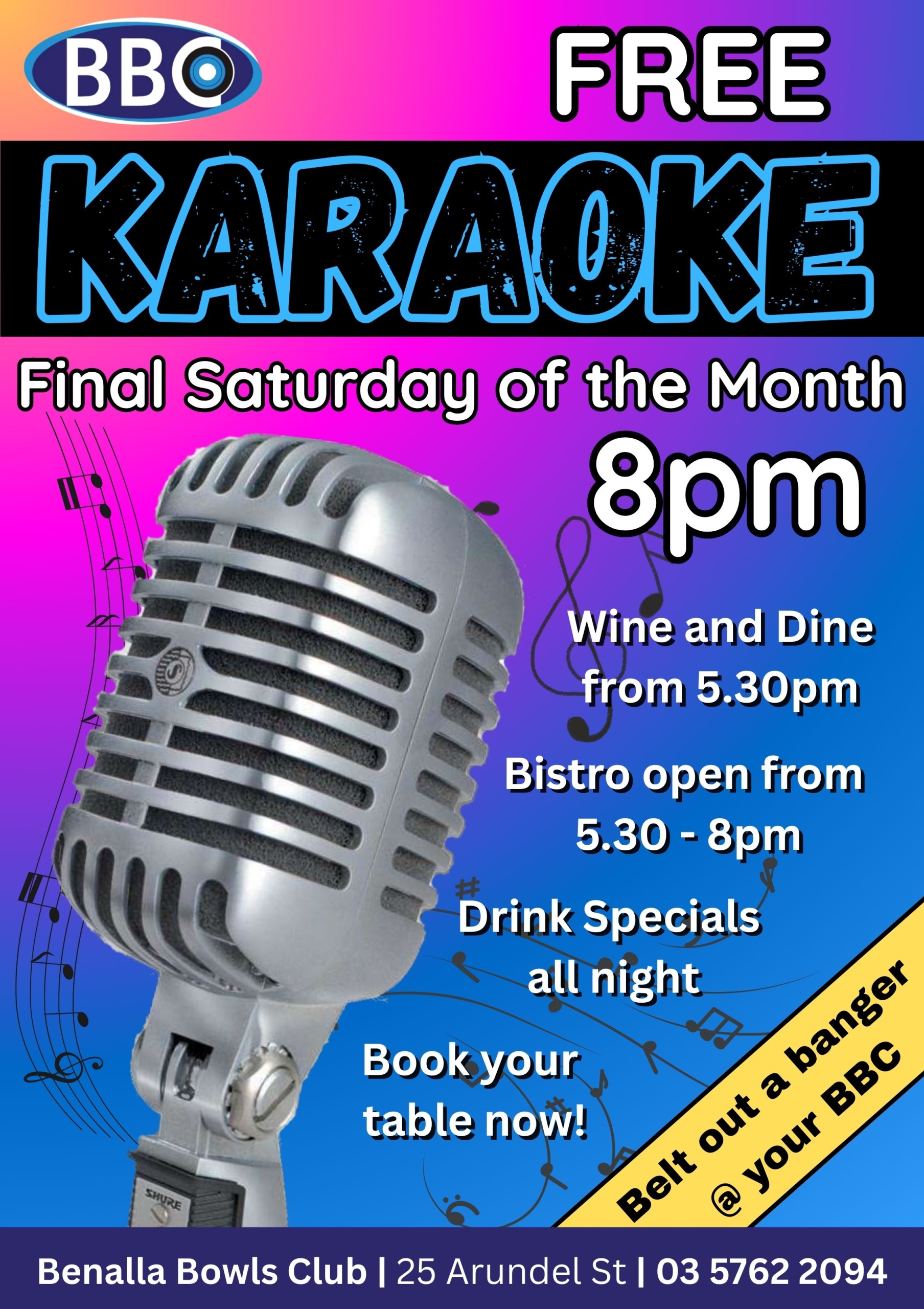 Entertainment at The Benalla Bowls Club